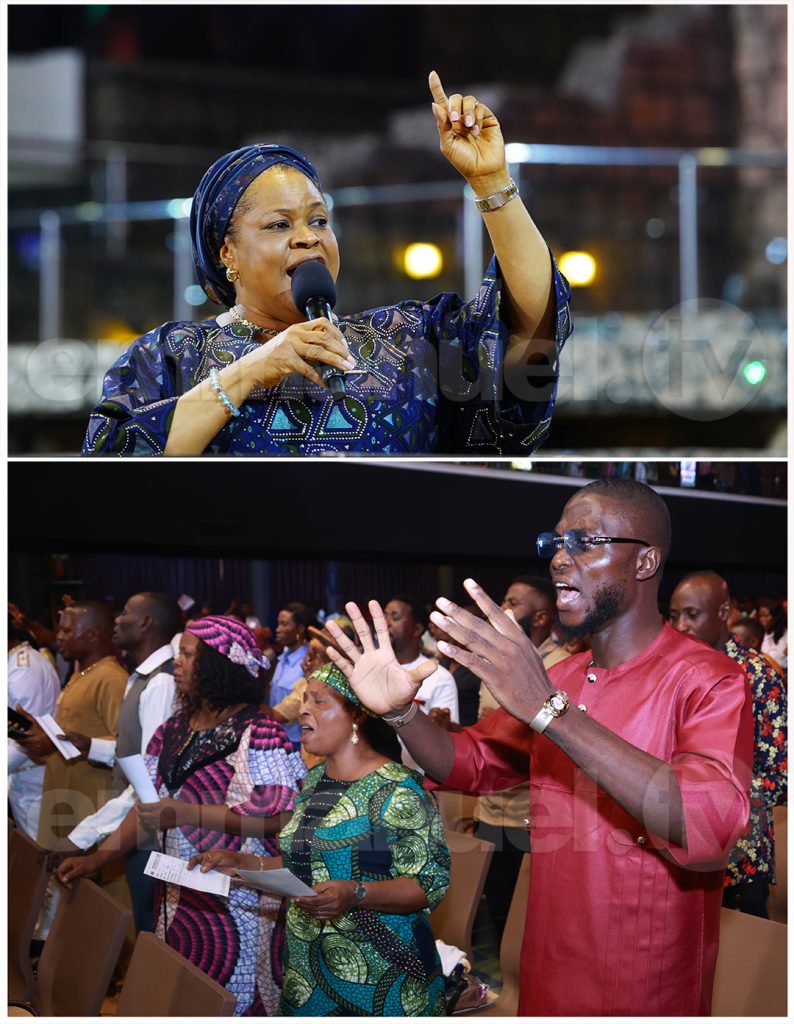 Pastor Evelyn Joshua began: “May the glory of God never depart from your life. Get ready to receive. Give thanks to God. I will never be shaken. I command every garment of filthiness around you, within you – be removed, in the name of Jesus!