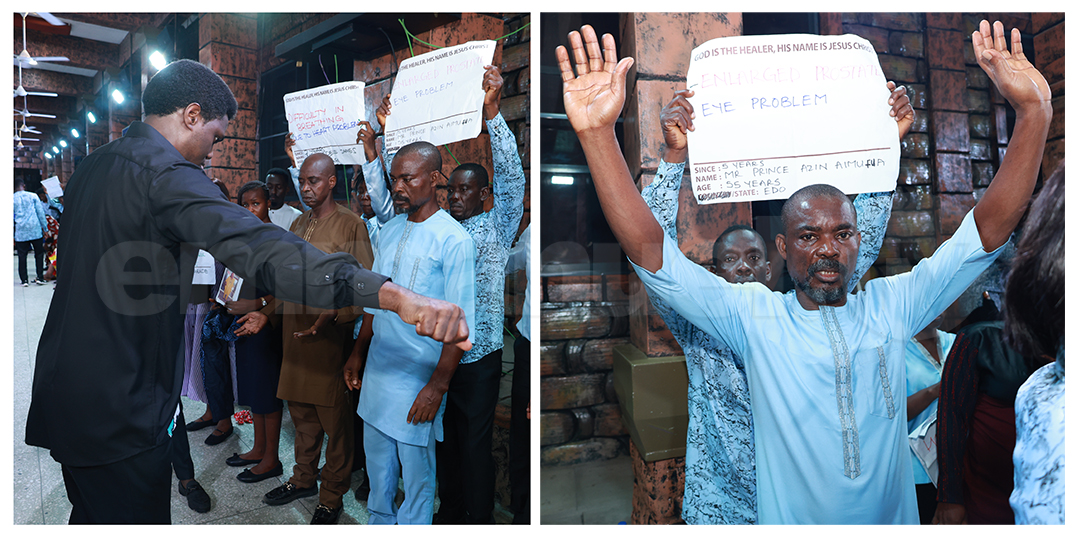 Right afterwards, The SCOAN Evangelists began the ministration of prayers of healing, deliverance and breakthrough. Among the cases were kidney disease, breast/pelvic cancer, swollen scrotum, leg ulcers, swelling in different parts of the body, difficulty in walking, difficulty in breathing, and stroke, among others.