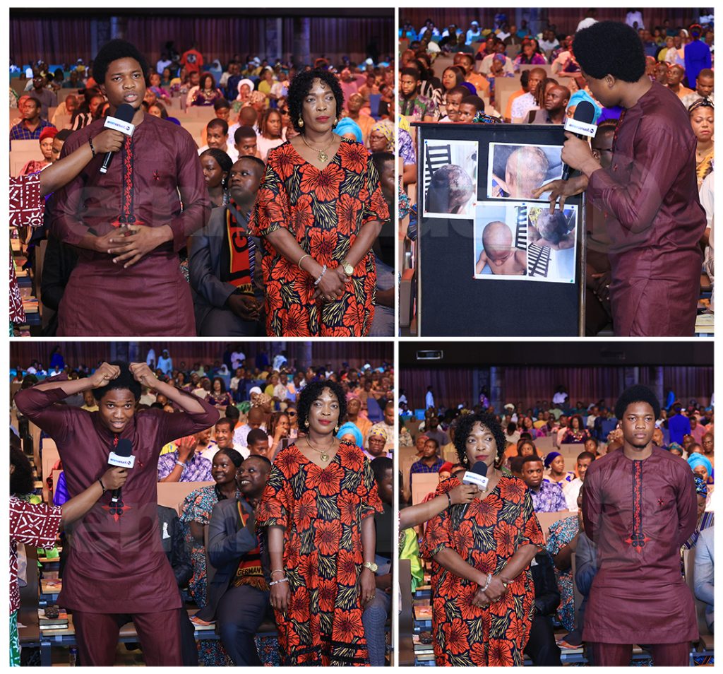 When 19-year-old Moses came for prayer in The SCOAN on March 16, 2025, he had no hair on his head. His placard read: “Hair Loss”.