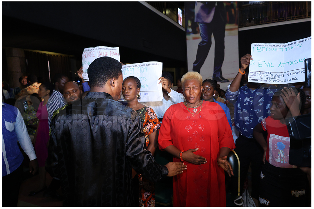 Pastor Evelyn Joshua petitioned the Lord over cases of difficulty in walking/breathing, drug/alcohol addiction, asthma, arthritis, hypertension, swollen belly/legs, goitre, prostate enlargement, and anal cancer, among others.