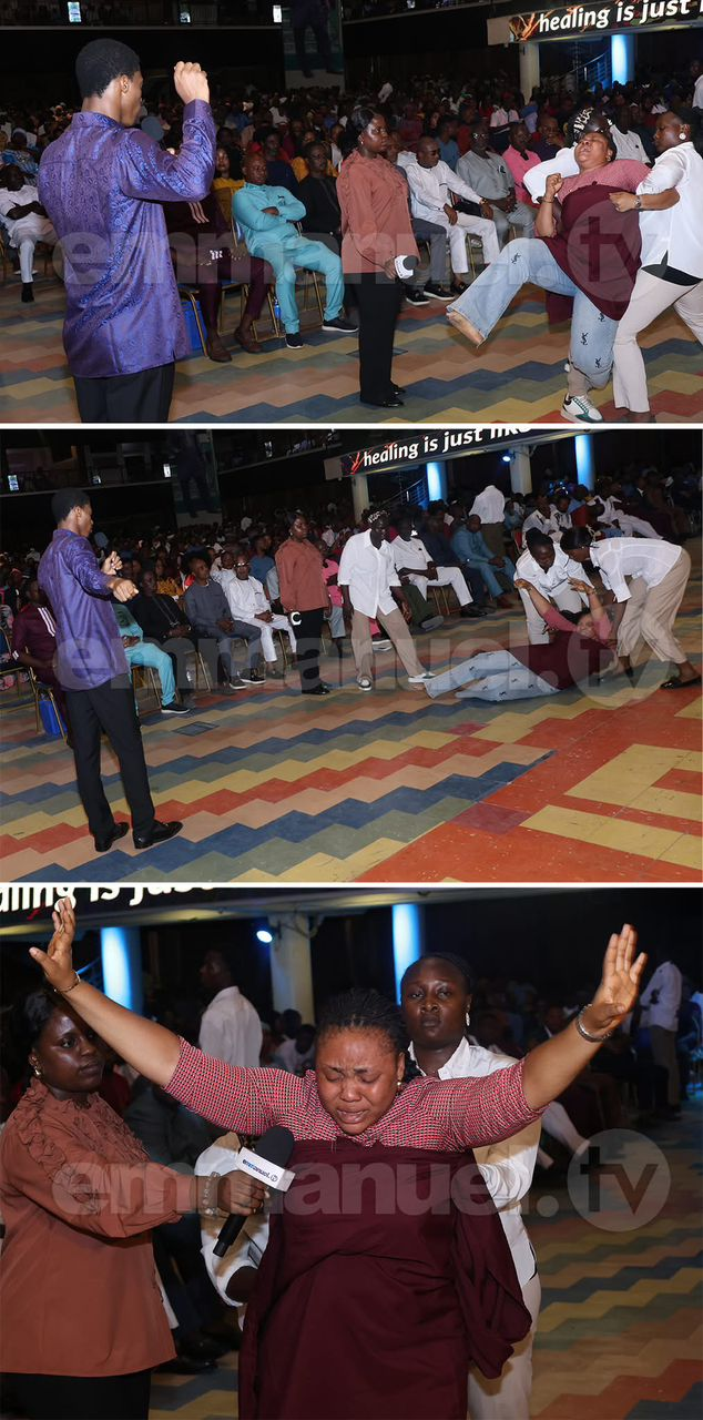 Taking over, Evangelist Joseph prayed passionately: “You messenger of satan attacking me day and night—anywhere you are, I command you, Holy Ghost Fire! You spirit of affliction, delay, setback, sickness, poison in my system—Holy Ghost Fire!”