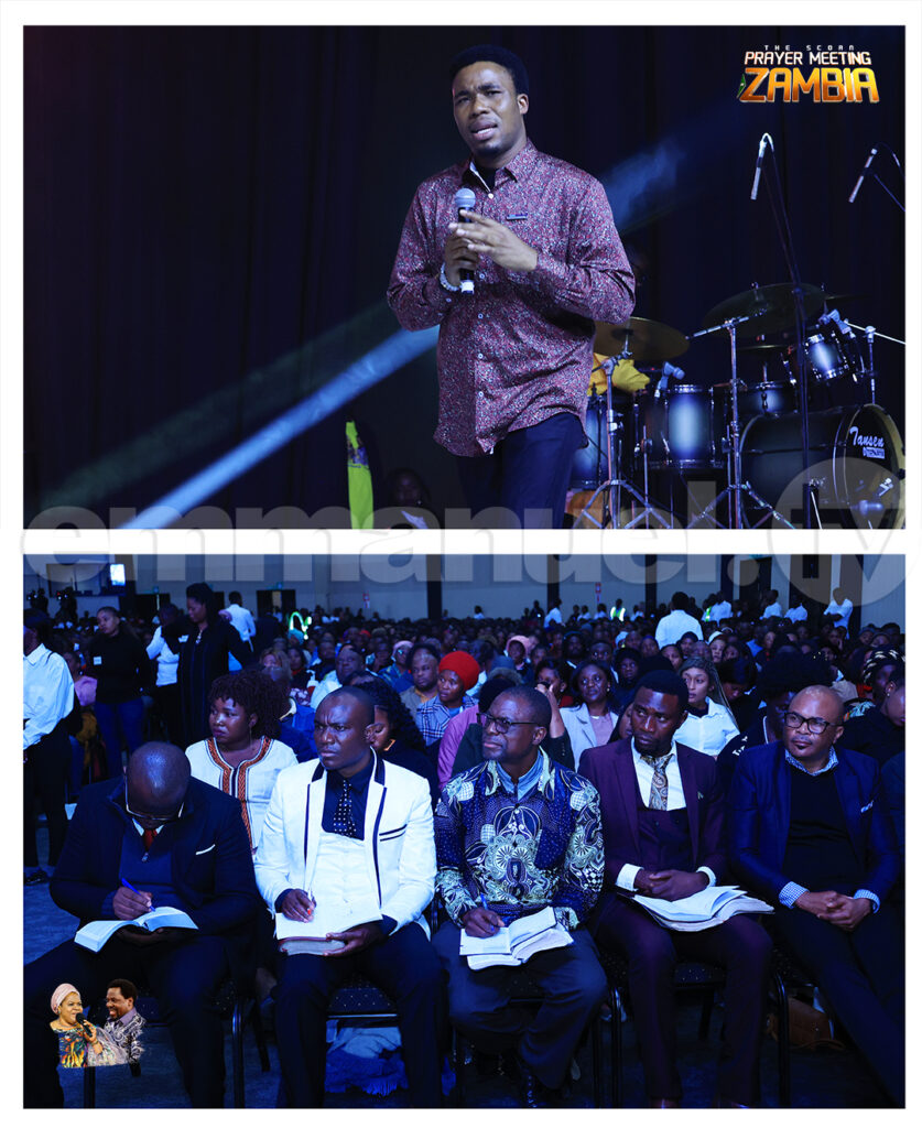 Evangelist Joseph leading the saying of The Grace at THE SCOAN ZAMBIA PRAYER MEETING.