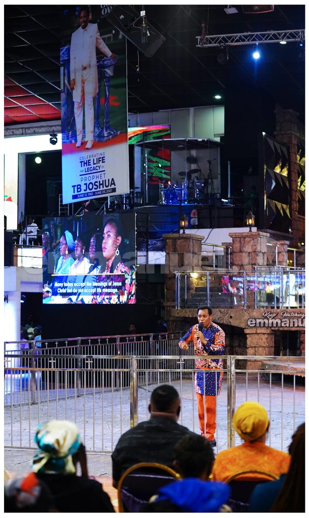 Evangelist Shina started his sermon by blessing God for His incredible power and might in The Synagogue. He also honoured the memory of the founder of The SCOAN, Prophet TB Joshua, even as he celebrated God’s faithfulness in the life of Pastor Evelyn Joshua.