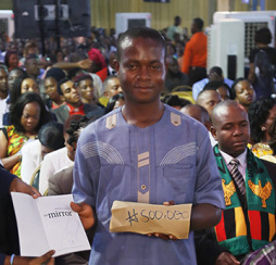 T.B. Joshua and the Emmanuel TV Partners gave Mr Solomon Ohakwe a cash gift of 500,000 naira to start a new life in Christ and a copy of The Mirror book.