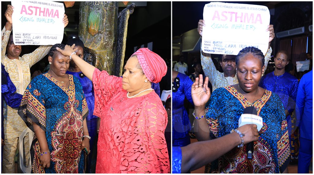 Pastor Evelyn Joshua and The SCOAN Evangelists then continued the ministration of prayers of healing and deliverance in the name of Jesus, commanding relief upon cases of swollen belly, brain tumour, erectile dysfunction, skin disease, hernia, mental disorder, piles, epilepsy, and heart/liver disease.
