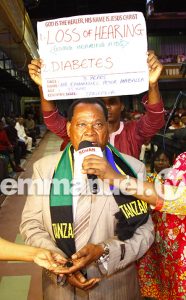 For nine years, Mrs Layi Petune, a 63-year-old from South Africa, suffered from hypertension and a fractured knee joint among other challenges. When Racine stretched his hand towards her and prayed in the name of Jesus, Mrs Petune removed the knee brace and walked into her permanent freedom from the ailments.