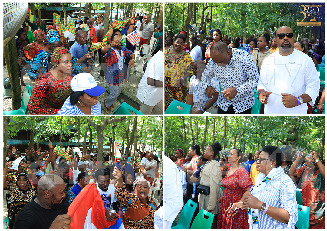 After her word of exhortation to the people, Pastor Evelyn Joshua introduced highlights from the Three-Day Revival Meeting at The SCOAN Prayer Mountain.